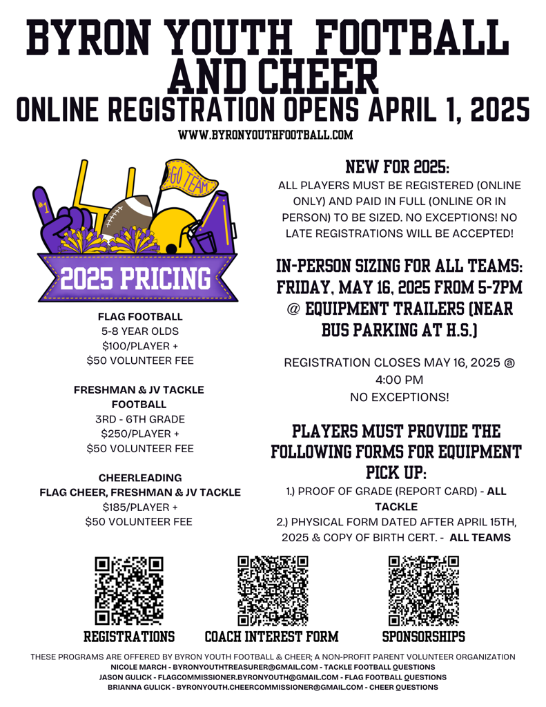 3. You must fill out your players registration from this website prior to equipment pick up.